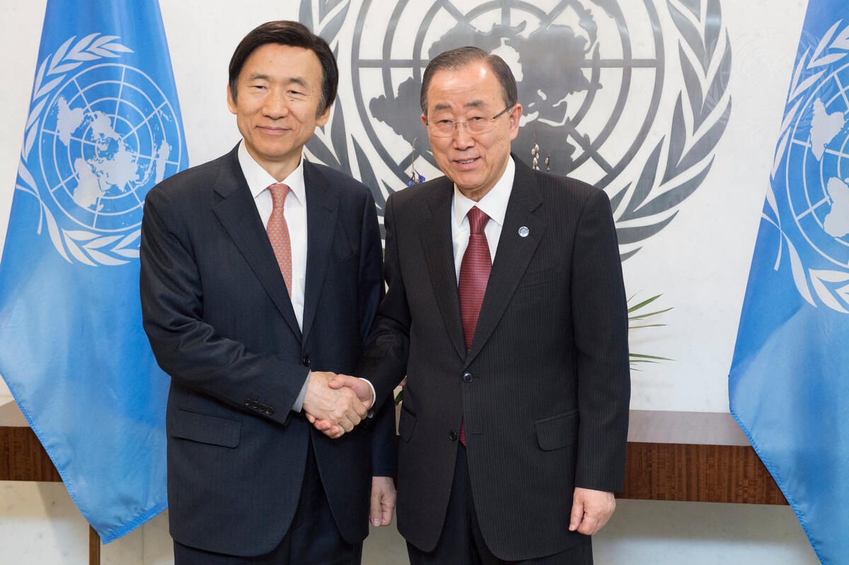 Secretary-General Ban Ki-moon (right) meets with Yun Byung-se, Minister for Foreign Affairs of the Republic of Korea.
