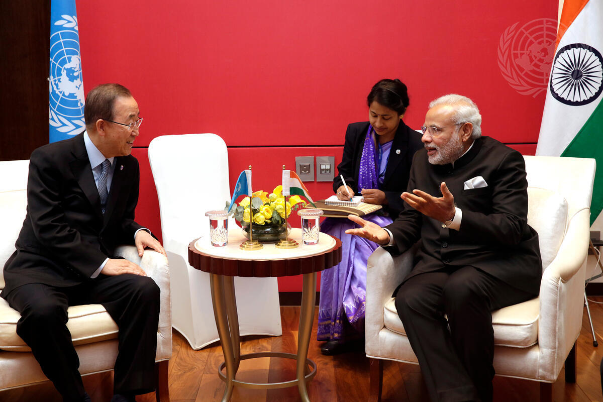 Secretary-General Ban Ki-moon (left) meets with Narendra Modi (right), Prime Minister of India, in Seoul, Republic of Korea.