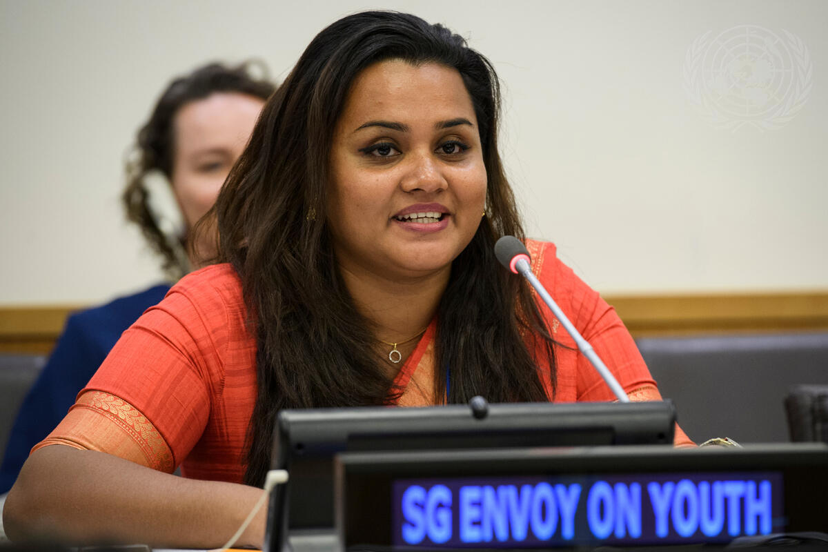 Jayathma Wickramanayake, the Secretary-General's Envoy on Youth, addresses an event held in observance of World Youth Skills Day, under the theme ""Skills for the Future of Work"".