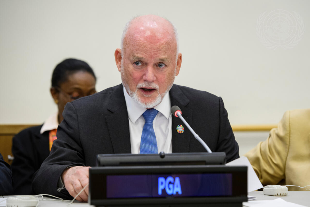 Peter Thomson, President of the seventy-first session of the General Assembly, addresses an event held in observance of World Youth Skills Day, under the theme ""Skills for the Future of Work"".