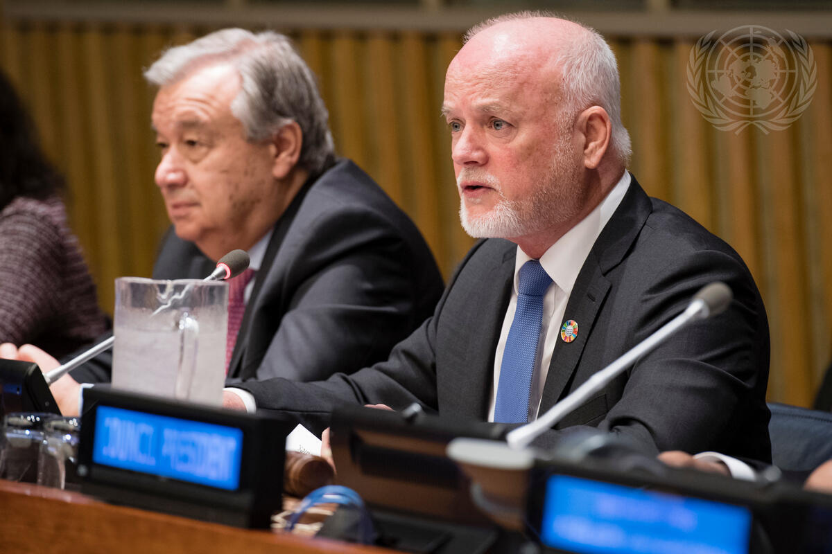 Peter Thomson, President of the seventy-first session of the General Assembly, makes remarks during the opening of the Ministerial segment of the High-Level Political Forum on Sustainable Development.