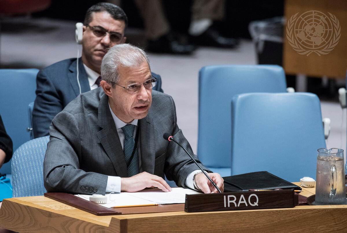 Mohammed Marzooq (right), Chargé d'affaires at the Permanent Mission of Iraq to the United Nations, adresses the Security Council meeting on situation concerning his country.