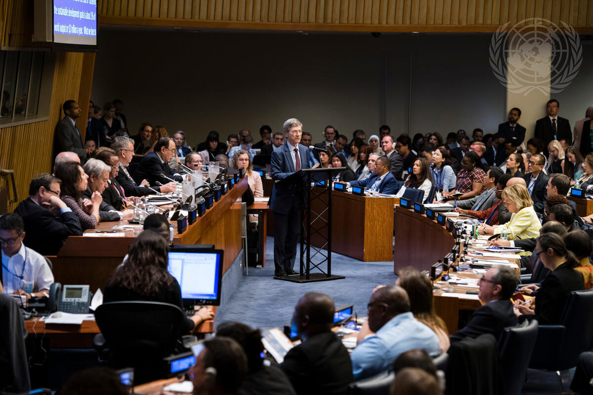Jeffrey Sachs, Director of the Earth Institute at Columbia University, delivers the keynote address during the opening of the Ministerial segment of the High-Level Political Forum on Sustainable Development.