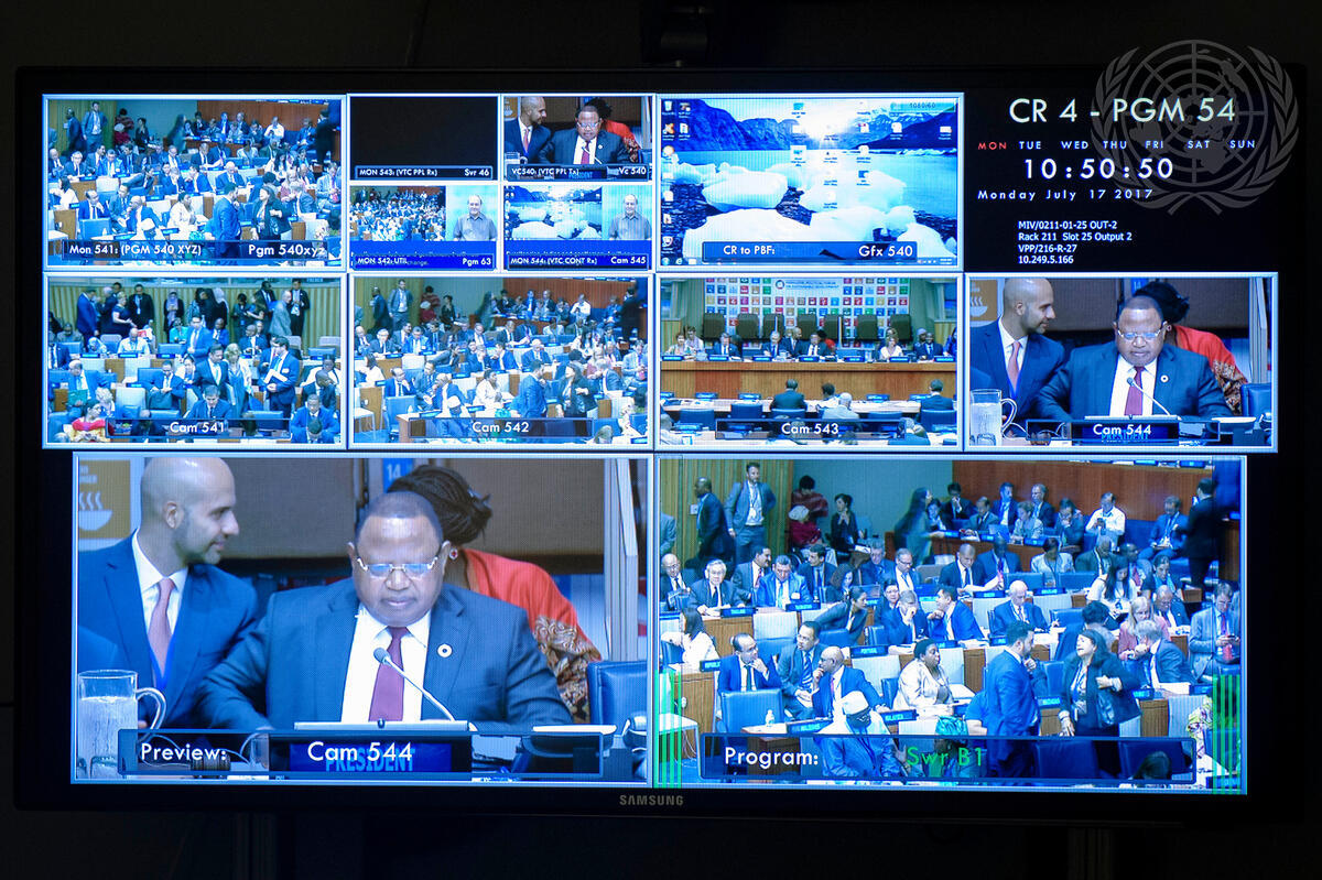 Detail of the television control switcher during the opening of the Ministerial segment of the High-Level Political Forum on Sustainable Development.