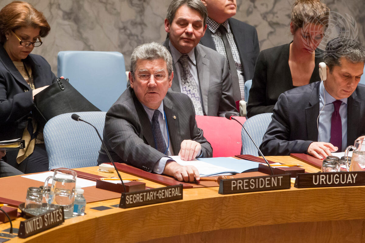 Elbio Oscar Rosselli Frieri, Permanent Representative of Uruguay to the UN and President of the Security Council for January, chairs the Security Council meeting on the situation in Mali.