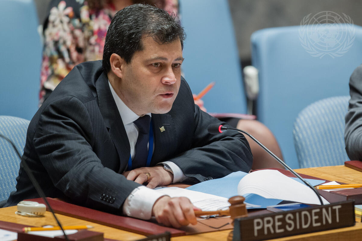 The representative of Uruguay chairs the Security Council meeting on the situation in Côte d’Ivoire as Council President for January.