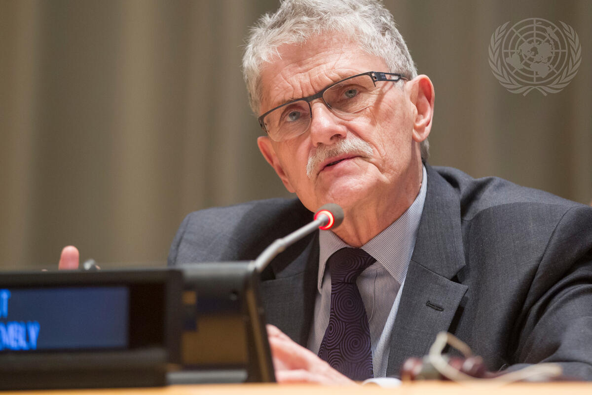 Mogens Lykketoft, President of the seventieth session of the General Assembly, makes closing remarks at today's panel discussion, ""Ethics and the Implementation of the Sustainable Development Goals (SDGs)"", organized by the Permanent Mission of Panama.