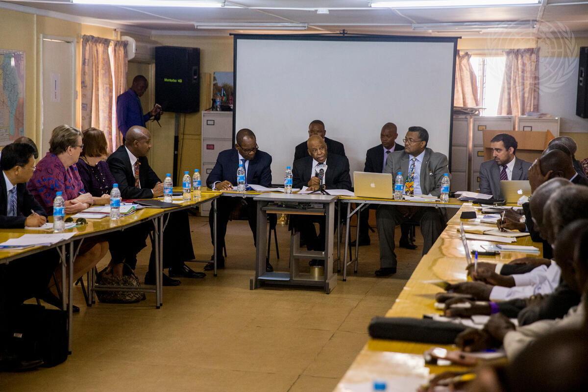 The third meeting of the Joint Monitoring and Evaluation Commission (JMEC) for the South Sudan peace accords is held in Juba on 12 January, chaired by Festus Gontebanye Mogae (centre), Chairperson of the JMEC. Participants included members of the SPLM/A (Sudan People's Liberation Movement/Army) and the SPLM/A-IO (SPLM/A-In Opposition); ambassadors from the diplomatic community in South Sudan; Ellen Margrethe Løj (second from left), Special Representative of the Secretary-General and Head of the UN Mission in South Sudan (UNMISS); members of the Intergovernmental Authority on Development (IGAD) Monitoring and Verification Team; women leaders; religious leaders; and other members of civil society.