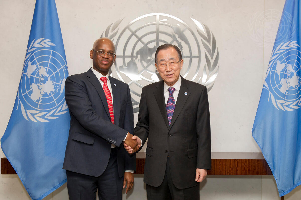 Secretary-General Ban Ki-moon (right) with El Ghassim Wane, newly sworn-in Assistant Secretary-General for Peacekeeping Operations.