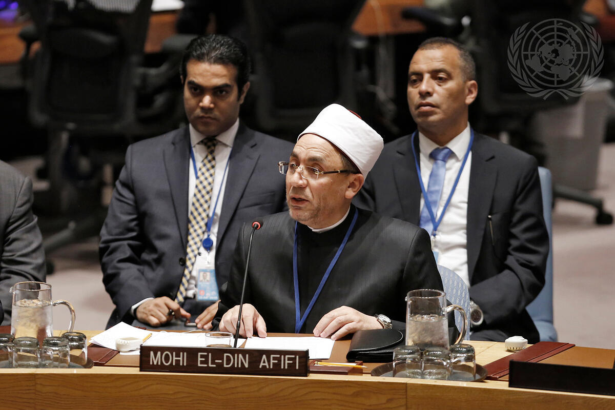 Mohi El-Din Afifi, Secretary-General of Al Azhar Islamic Research Academy, addresses the Security Council open debate on “Threats to international peace and security caused by terrorist acts: Countering the narratives and ideologies of terrorism”.