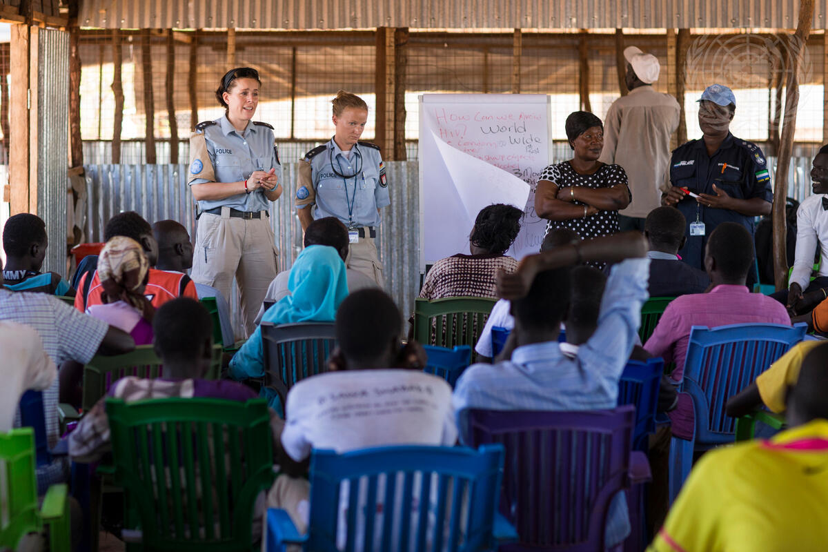 The UN Mission in South Sudan (UNMISS) provides training in combating sexual and gender-based violence to residents of a Protection of Civilians site (PoC 3) in Juba. The training is conducted by the UN Police (UNPOL) Gender, Child and Vulnerable Persons Protection team in coordination with the UNMISS Human Rights Division and Child Protection Unit.