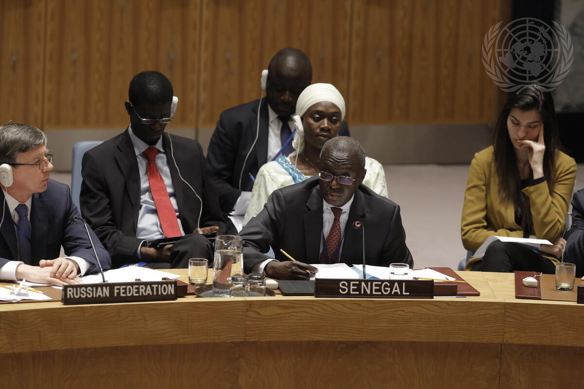 Fodé Seck, Permanent Representative of the Republic of Senegal to the UN, addresses the Security Council open debate on ""Threats to international peace and security caused by terrorist acts: Countering the narratives and ideologies of terrorism"".