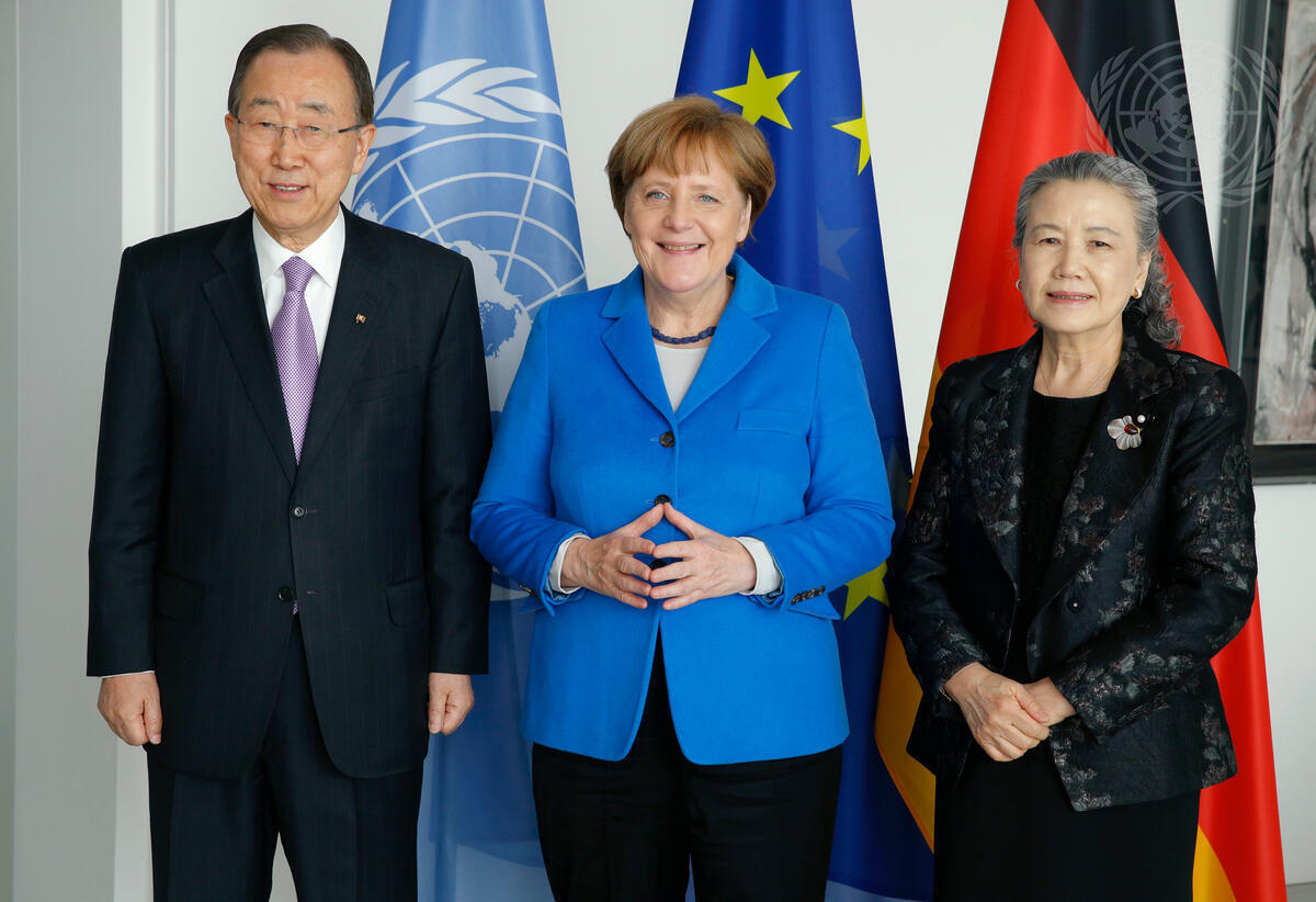 Secretary-General Ban Ki-moon met with Angela Merkel, Chancellor of Germany, and received during their meeting the Order of Merit of Federal Republic of Germany.