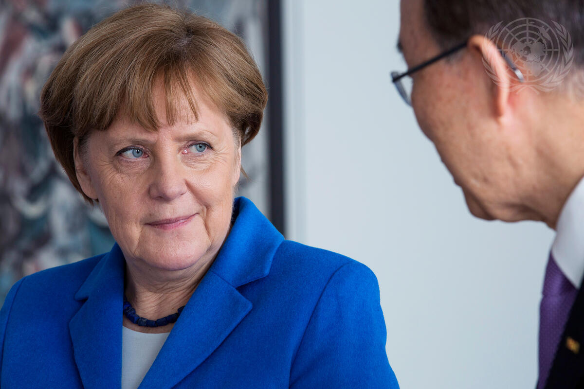 Secretary-General Ban Ki-moon met with Angela Merkel, Chancellor of Germany, and received during their meeting the Order of Merit of Federal Republic of Germany.