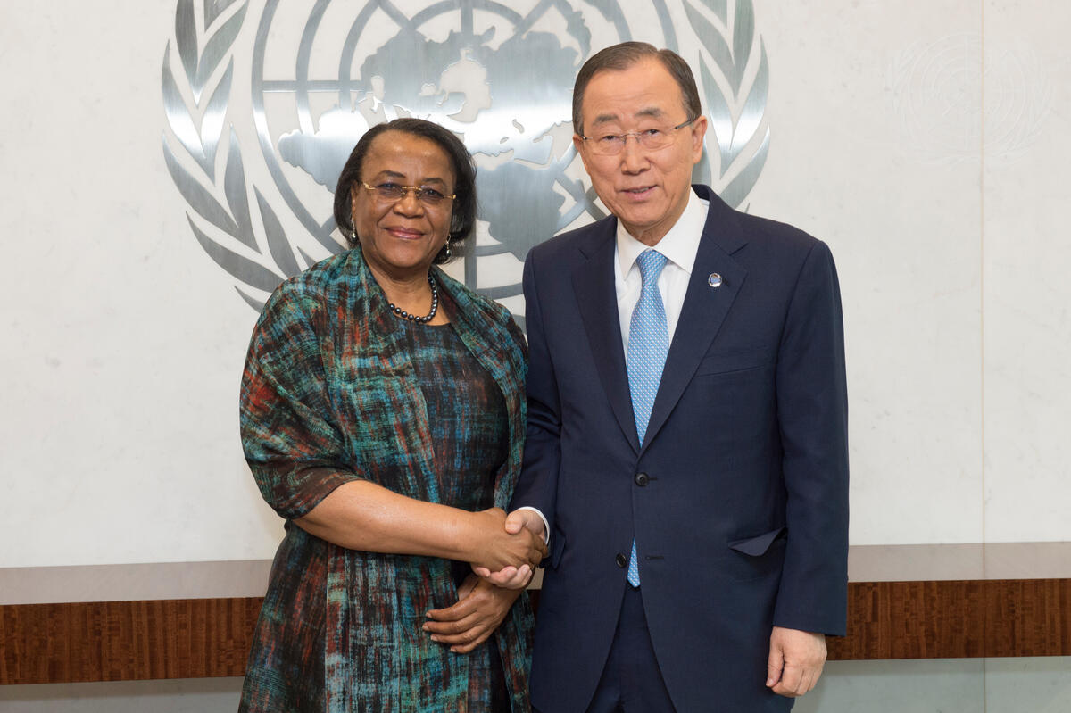 Secretary-General Ban Ki-moon (right) meets with U. Joy Ogwu, outgoing Permanent Representative of Nigeria to the United Nations.