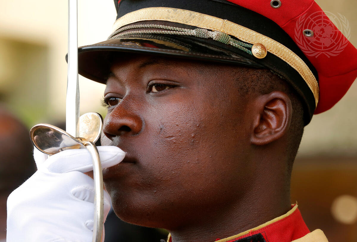 A member of the presidential guard during Secretary-General Ban Ki-moon’s joint press conference with Roch Marc Christian Kaboré, President of Burkina Faso, in Ouagadougou.