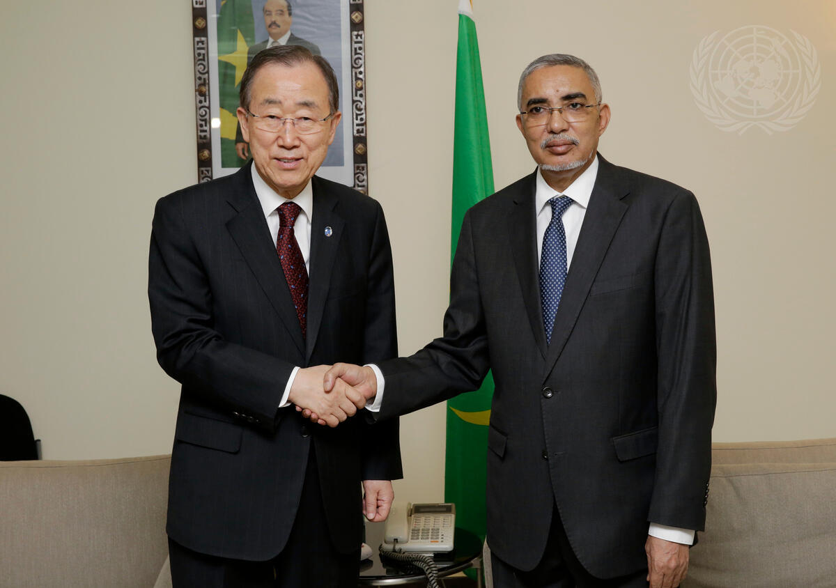 Secretary-General Ban Ki-moon (left) meets with Yahya Ould Hademine, Prime Minister of the Islamic Republic of Mauritania.
