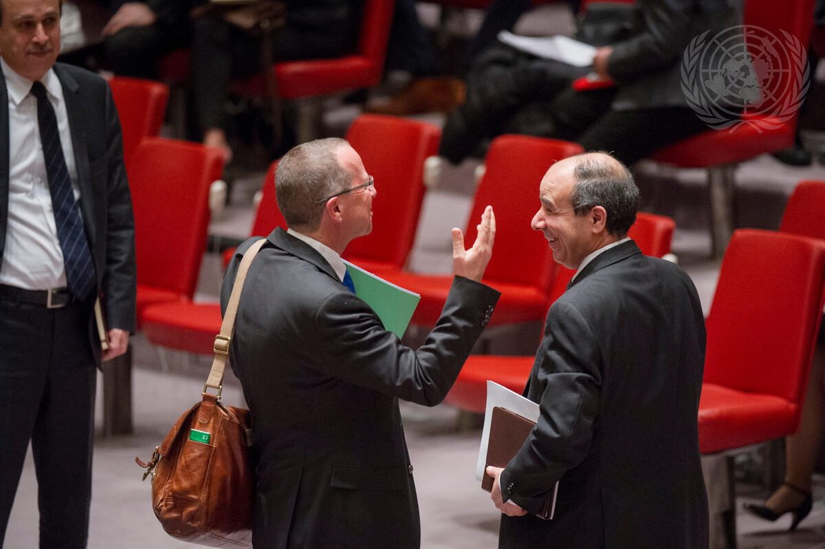 Ibrahim Dabbashi (right), Permanent Representative of Libya to the UN, with Martin Kobler, Special Representative of the Secretary-General and Head of the UN Support Mission in Libya (UNSMIL), at the Security Council meeting on the situation in that country.