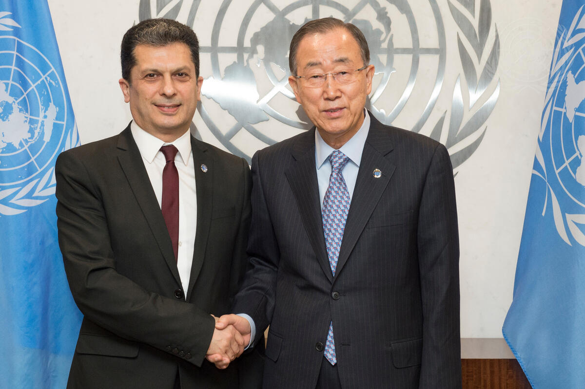 Secretary-General Ban Ki-moon (right) with Movses Abelian, newly sworn-in Assistant Secretary-General for General Assembly and Conference Management.