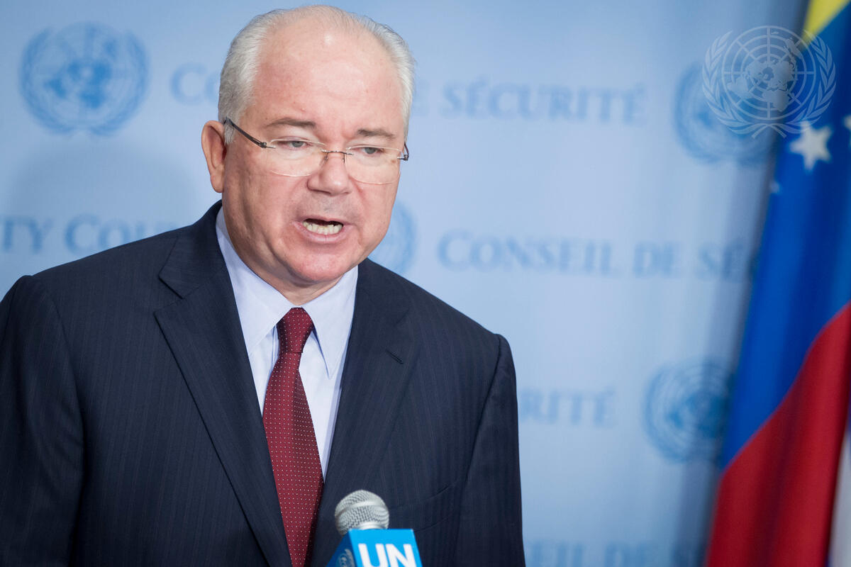 Rafael Darío Ramírez Carreño, Permanent Representative of the Bolivarian Republic of Venezuela to the UN, briefs journalists on a statement from the Non-Aligned Movement (NAM) in support of his country regarding United States sanctions imposed on Venezuela.