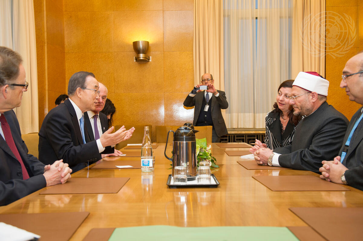 Secretary-General Ban Ki-moon meets with Shawki Allam, Grand Mufti of Egypt at the Palais des Nations in Geneva, Switzerland.