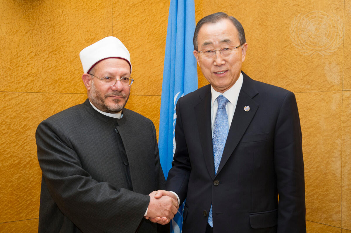 Secretary-General Ban Ki-moon (right) meets with Shawki Allam, Grand Mufti of Egypt, at the Palais des Nations in Geneva, Switzerland.