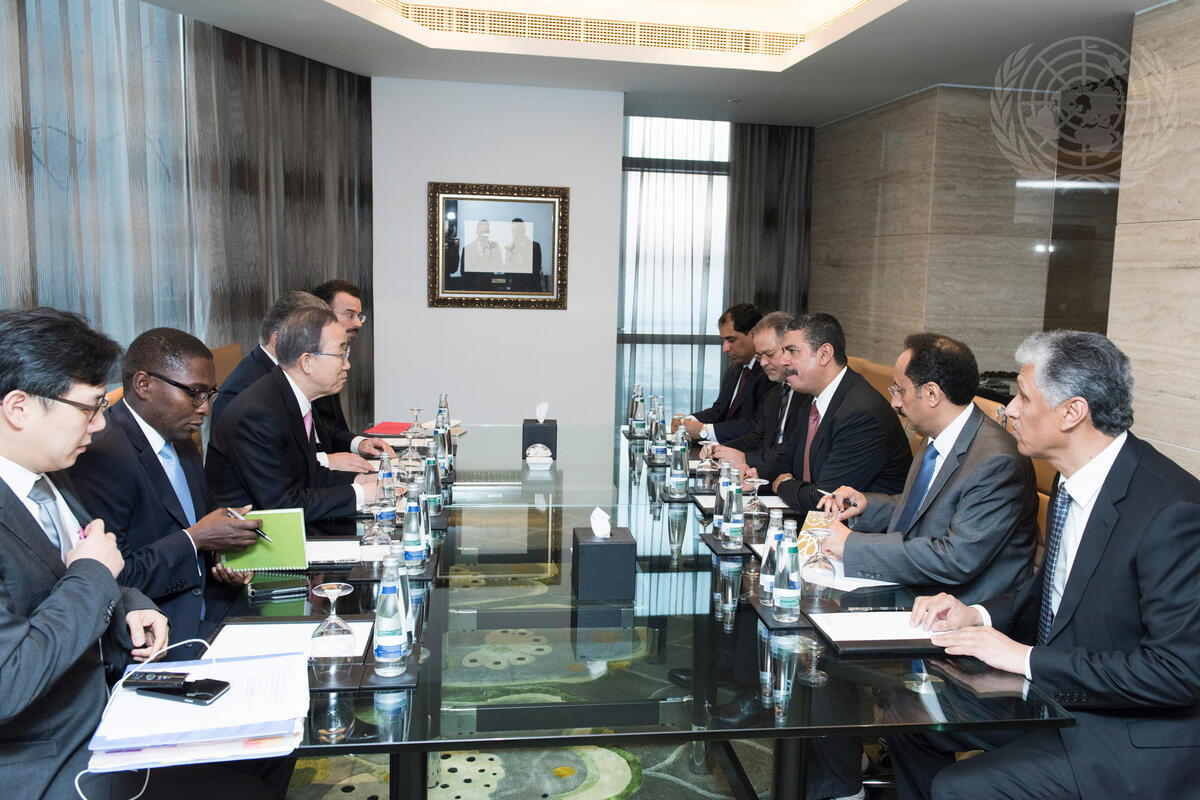Secretary-General Ban Ki-moon meets Khaled Mahfoodh Abdullah Bahah, Vice President and Prime Minister of Yemen. Their meeting takes place during Abu Dhabi Global Action Day in Abu Dhabi, United Arab Emirates.
