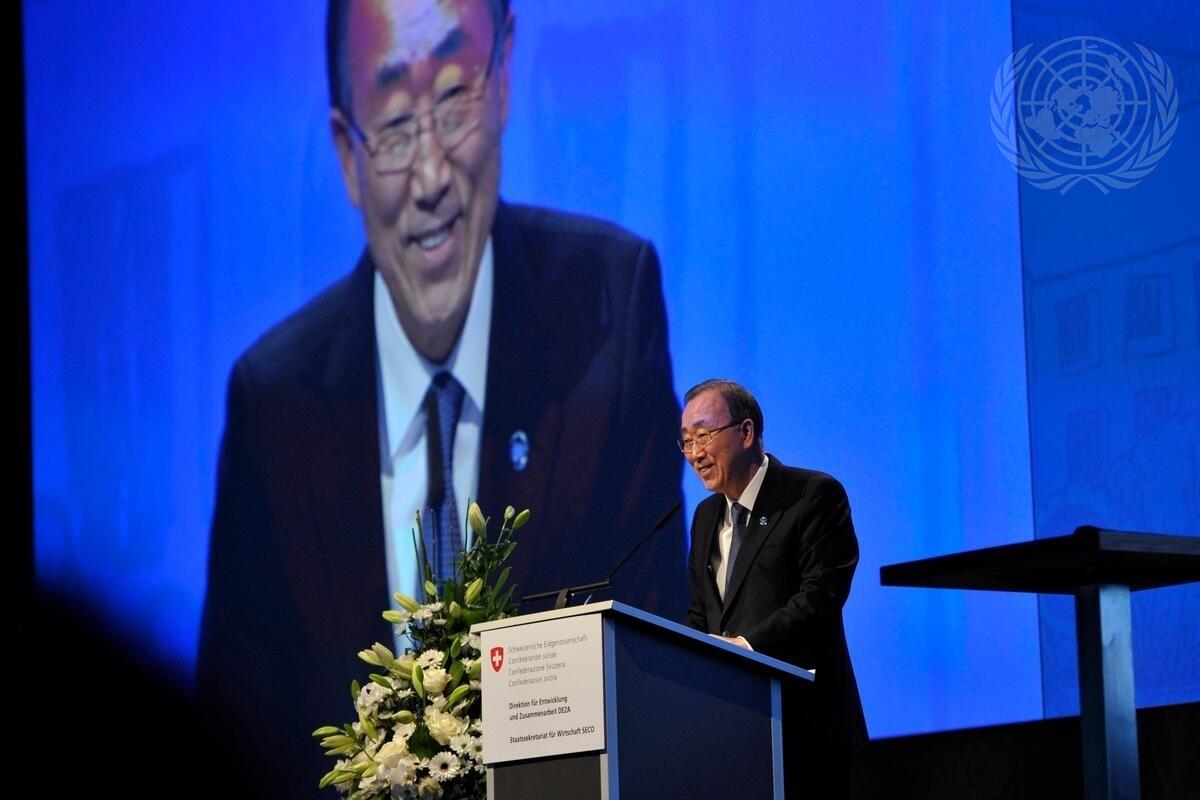 Secretary-General Ban Ki-moon delivers his keynote address at the 2030 Agenda for Sustainable Development in Zurich, Switzerland.