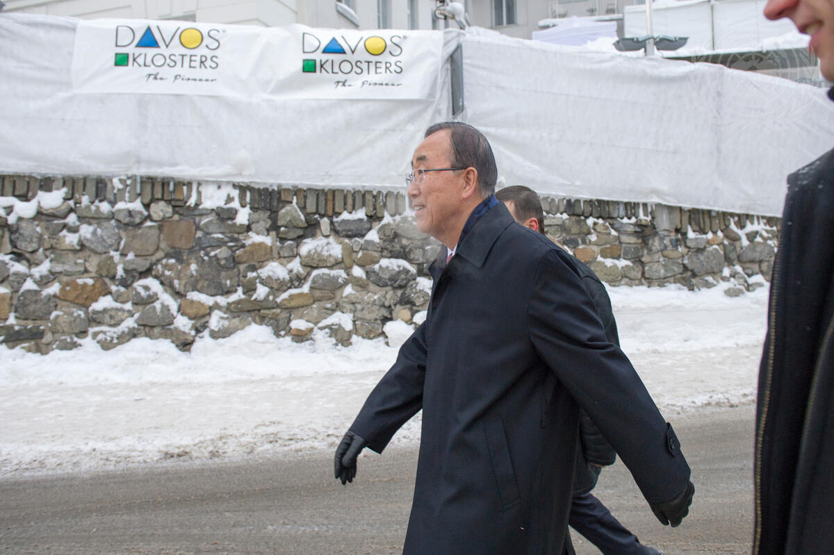Secretary-General Ban Ki-moon arrives in Davos ahead of the World Economic Forum.