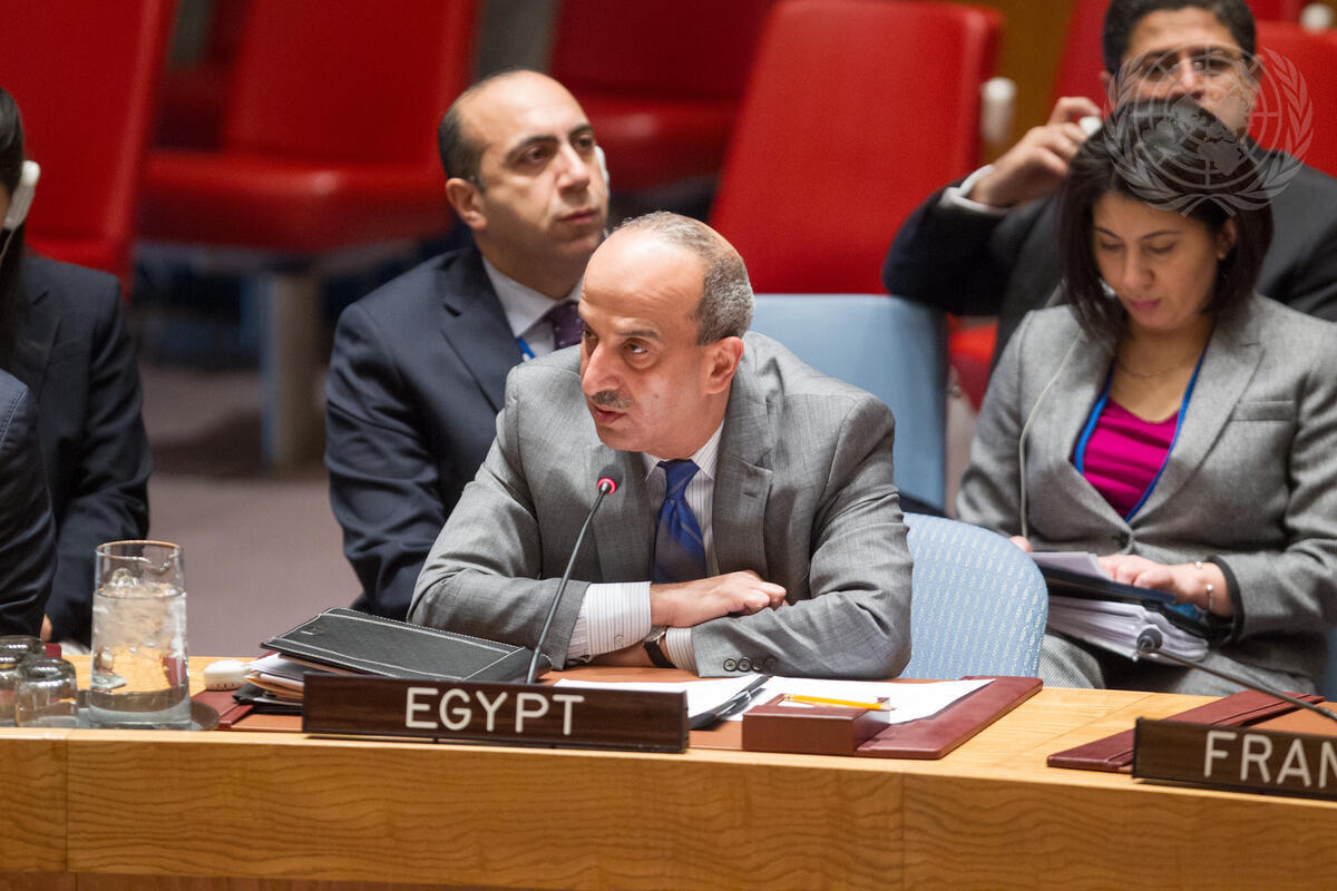 Osama Abdelkhalek Mahmoud, Deputy Permanent Representative of the Arab Republic of Egypt to the UN, delivers remarks during the meeting.