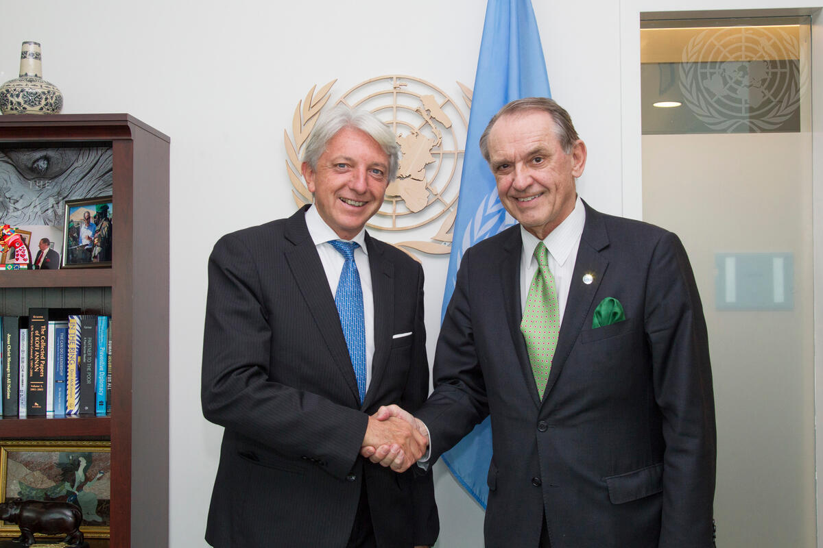 Deputy Secretary-General Jan Eliasson (right) meets with Carlos Foradori (left), Vice Minister of Foreign Affairs of Argentina.