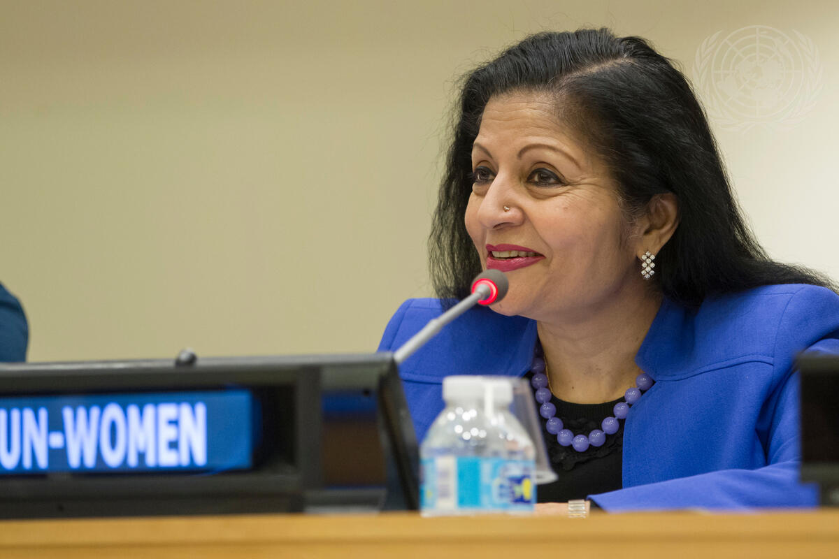 Lakshmi Puri, Deputy Executive Director for the United Nations Entity for Gender Equality and the Empowerment of Women (UN Women), makes opening remarks at a multi-stakeholder forum on ""Implementing the 2030 Agenda to Accelerate Realization of Gender Equality and the Empowerment of Women and Girls"".