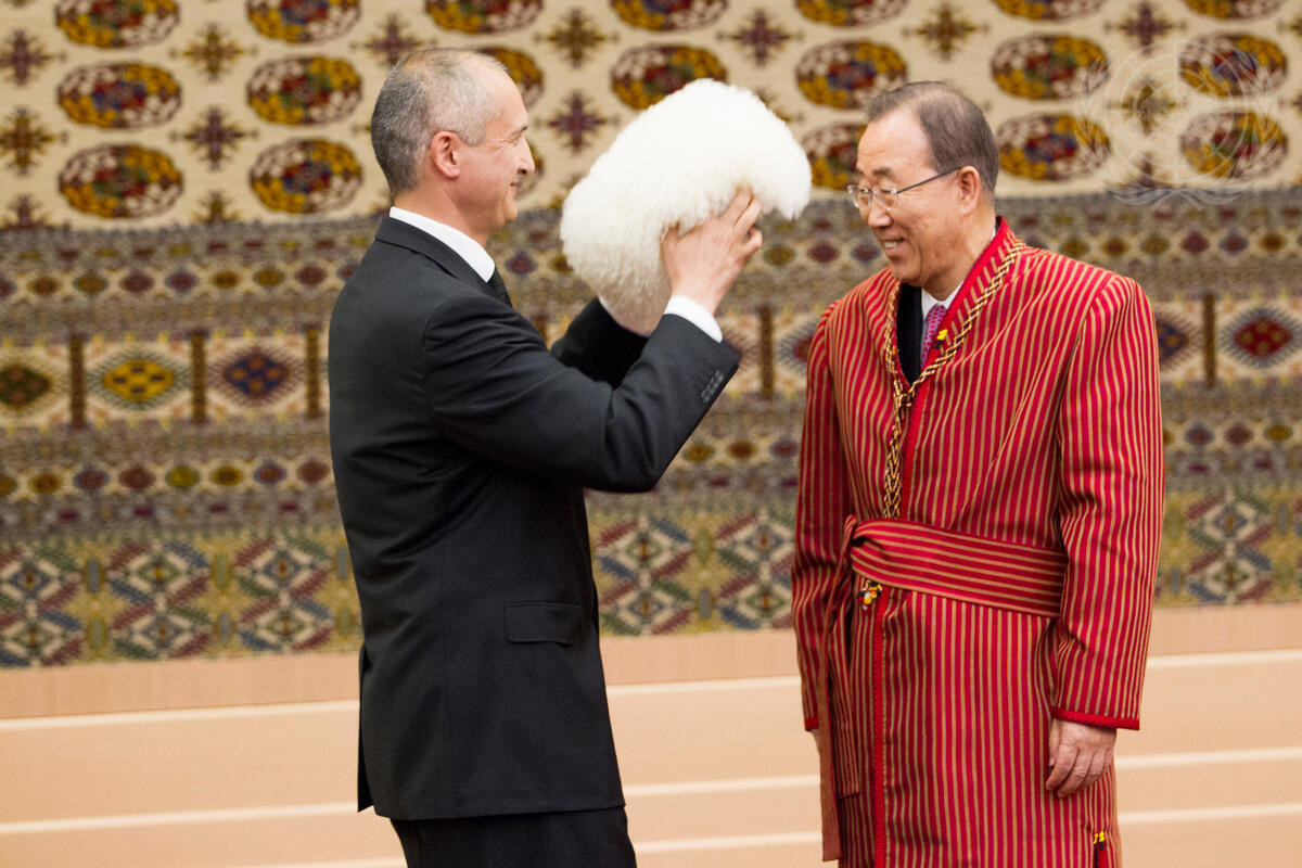 Secretary-General Ban Ki-moon received an honorary degree from the International University for Humanities and Development in the Turkmen capital of Ashgabat.