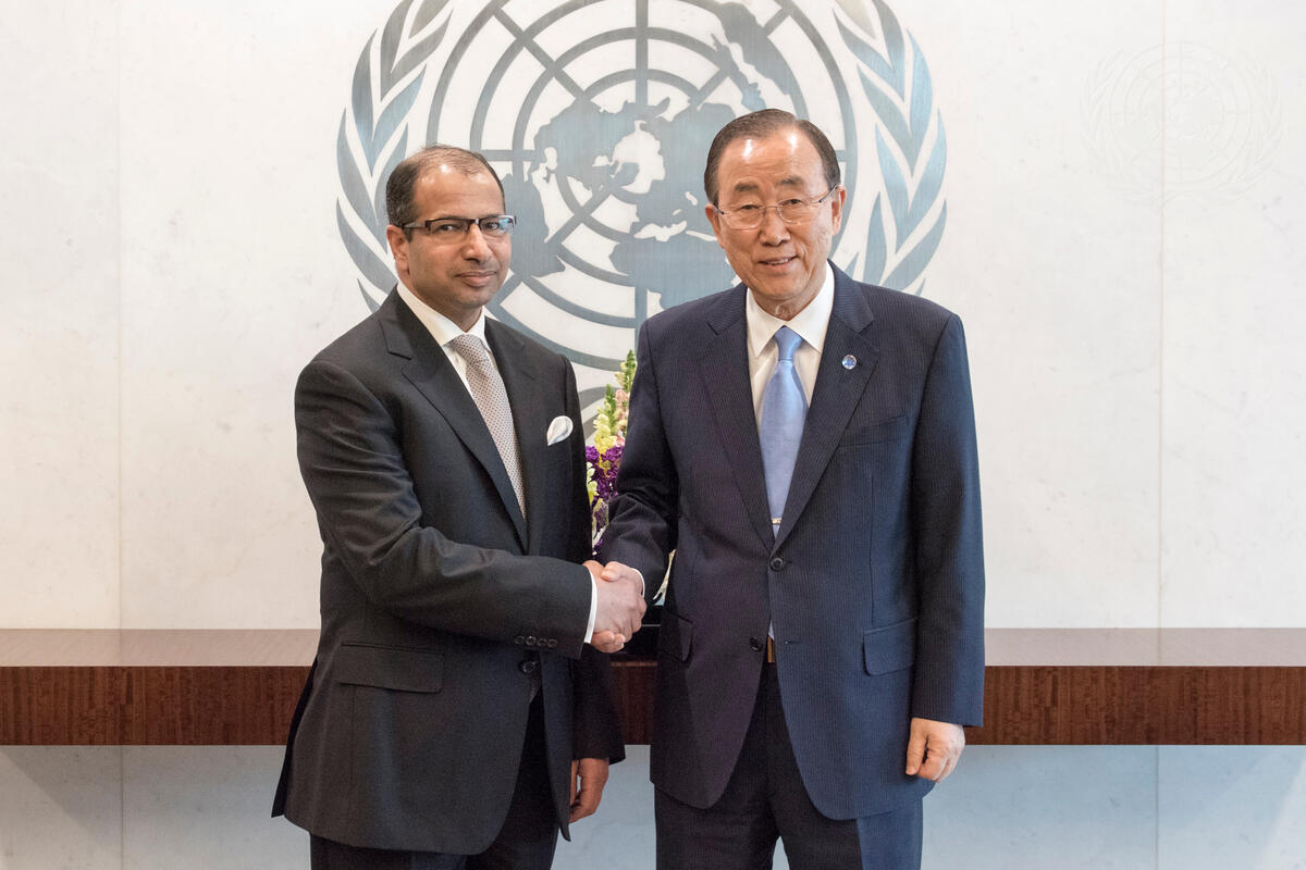 Secretary-General Ban Ki-moon (right) meets with Saleem Abdullah Al-Jubouri, Speaker of the Council of Representatives of Iraq, the country’s parliament.
