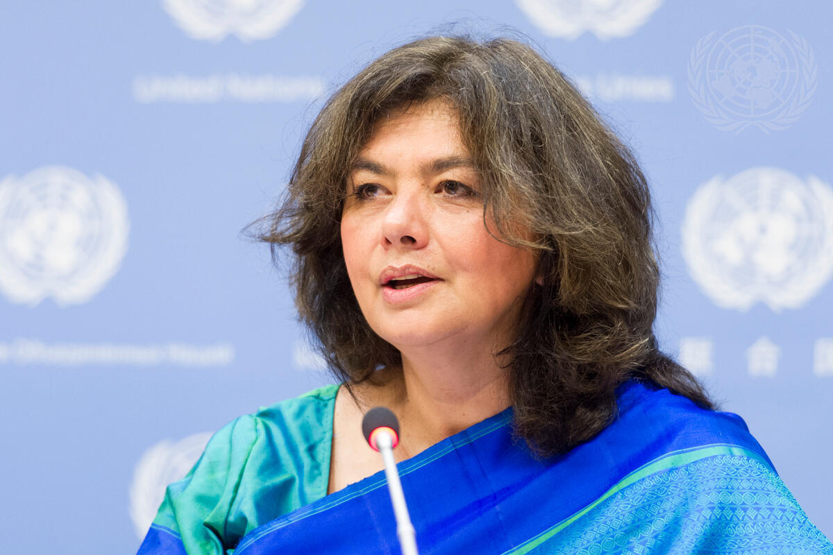 Nata Menabde, Executive Director of the New York Office of the World Health Organization (WHO), briefs journalists on the first-ever International Day of Yoga, which will be observed on 21 June.