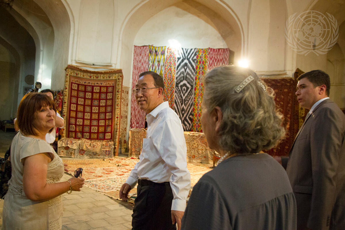 Secretary-General Ban Ki-moon (centre) and his wife, Yoo Soon-taek (foreground), visit the UNESCO World Heritage Site in Bukhara, Uzbekistan