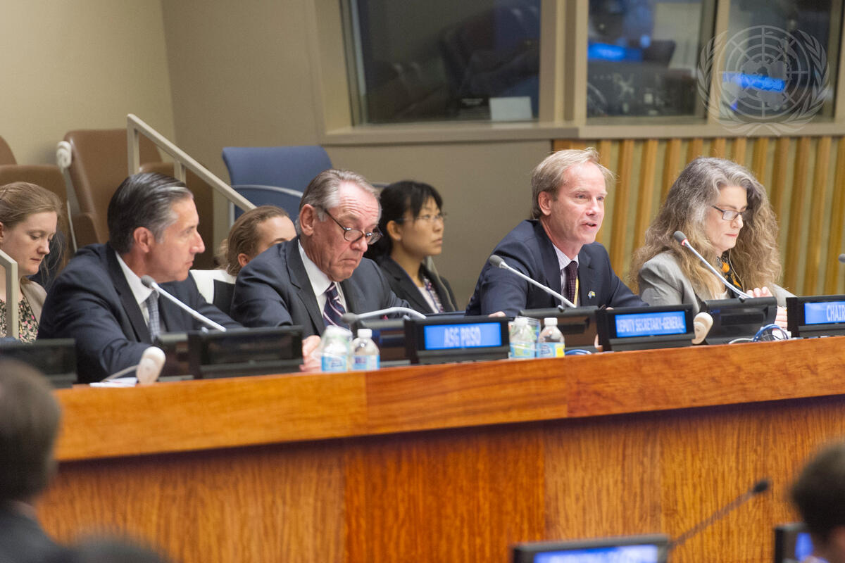 Olof Skoog (second from right), Permanent Representative of Sweden to the UN and Chair of the Peacebuilding Commission (PBC), addresses the opening of the 2015 annual session of Commission. Also pictured (from left): Oscar Fernández-Taranco, Assistant Secretary-General for Peacebuilding Support; Deputy Secretary-General Jan Eliasson.
