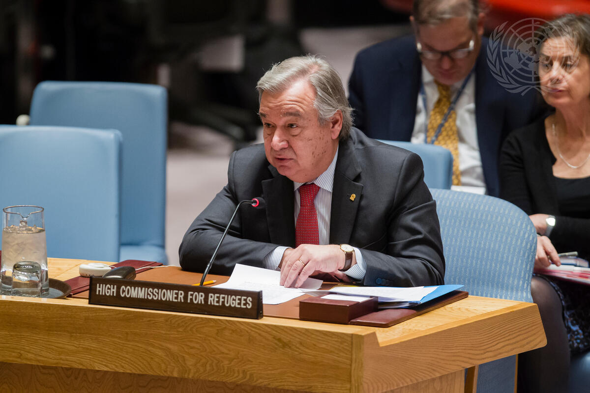 António Guterres, UN High Commissioner for Refugees, briefs the Security Council at its meeting on the situation in Syria.