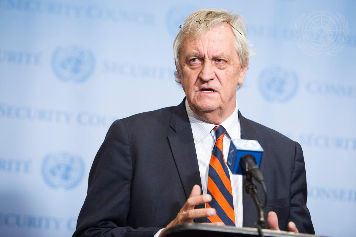 Nicholas Haysom, Special Representative of the Secretary-General and Head of the United Nations Assistance Mission in Afghanistan (UNAMA), speaks to journalists following a Security Council meeting on the situation in that country.