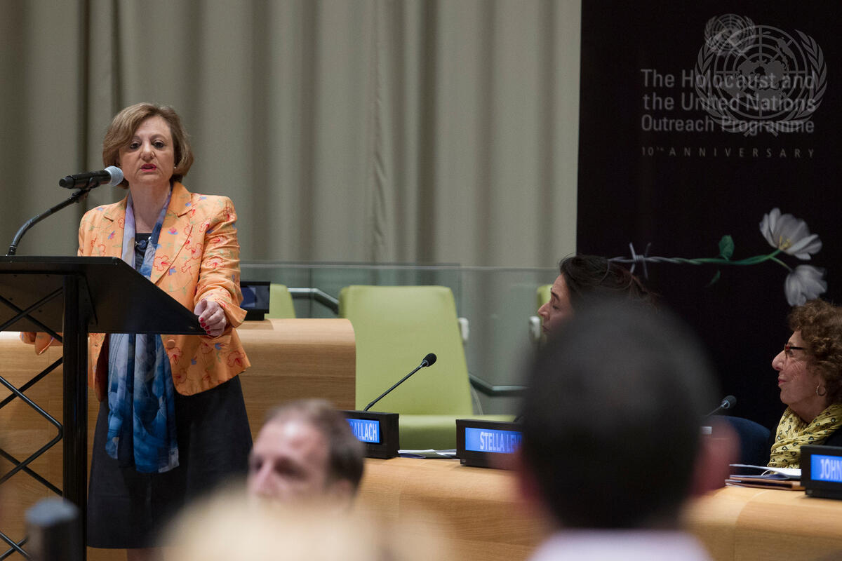 Cristina Gallach, UN Under-Secretary-General for Communications and Public Information, makes opening remarks at this evening's roundtable discussion entitled, ""After the Holocaust - Primo Levi and the Nexus of Science, Responsibility and Humanism"". The event was organized by the Holocaust and United Nations Outreach Programme in partnership with the Centro Primo Levi, New York, and took place on 4 May 2016 on the occasion of Yom HaShoah (Holocaust Memorial Day on the Hebrew calendar).