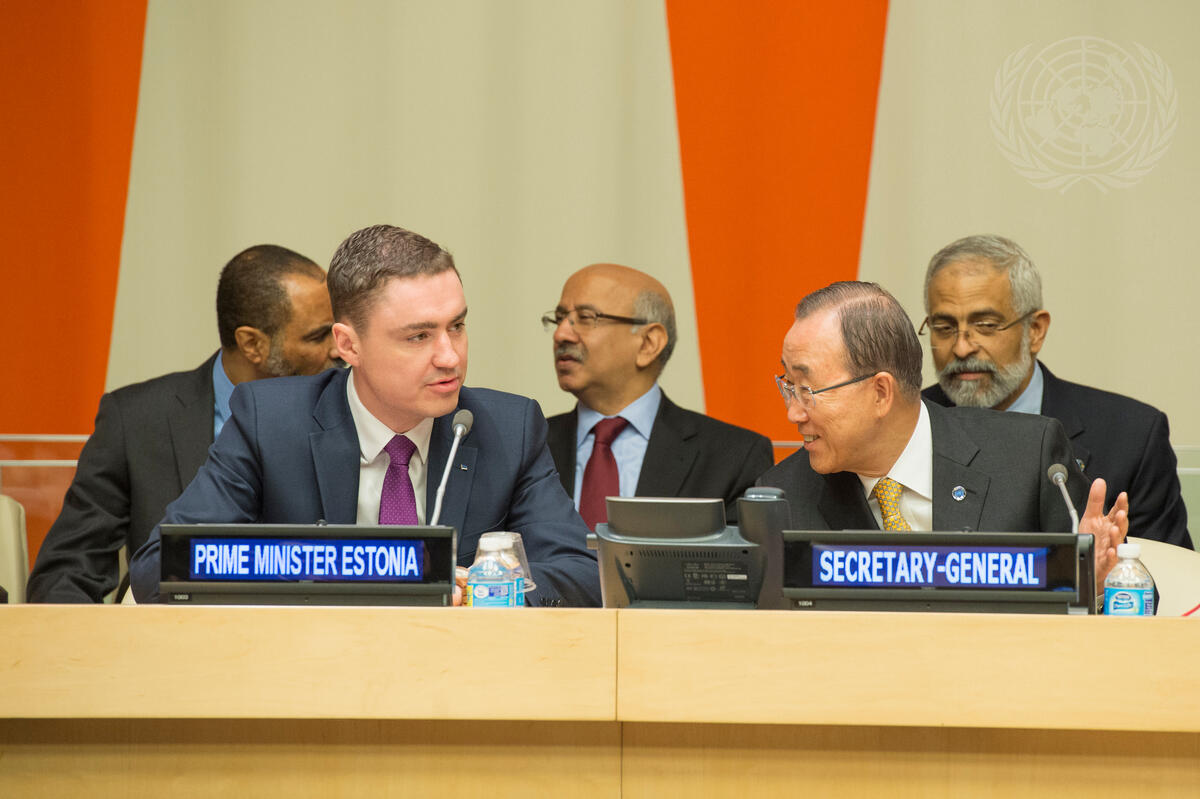 Secretary-General Ban Ki-moon (front right) with Taavi Rõivas, Prime Minister of the Republic of Estonia, at the ECOSOC Integration Segment.