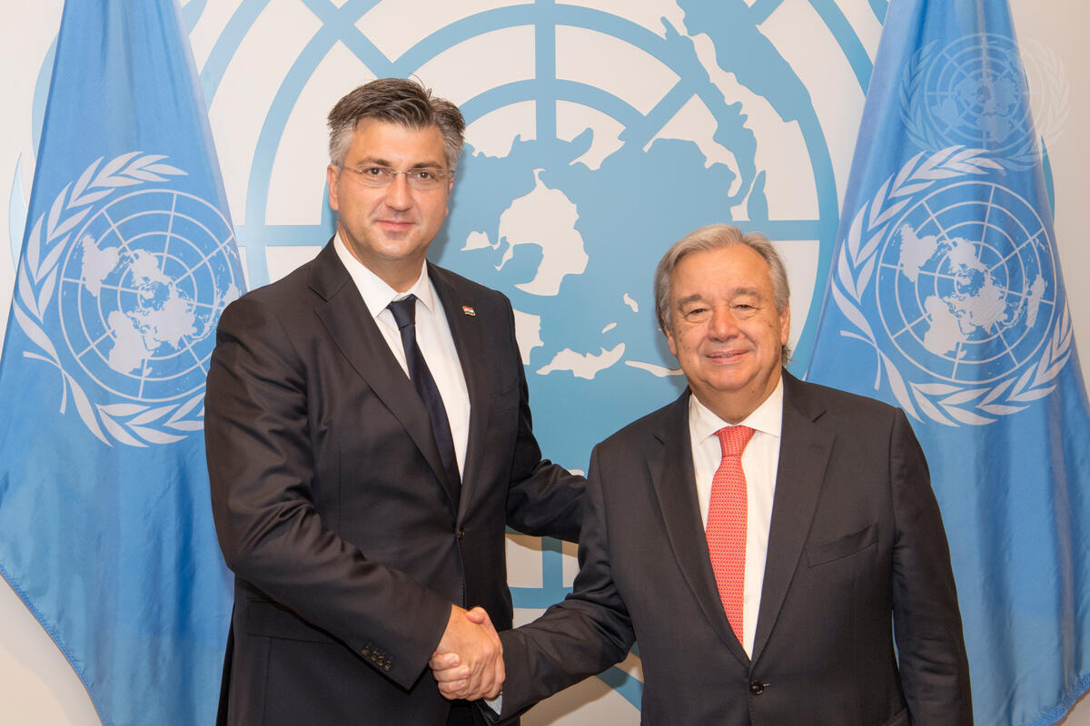 Secretary-General António Guterres (right) meets with Andrej Plenkovic, Prime Minister of the Republic of Croatia.