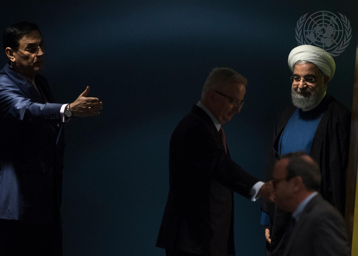 Hassan Rouhani (right), President of the Islamic Republic of Iran, enters the General Assembly Hall to address the general debate of the General Assembly’s seventy-second session.
