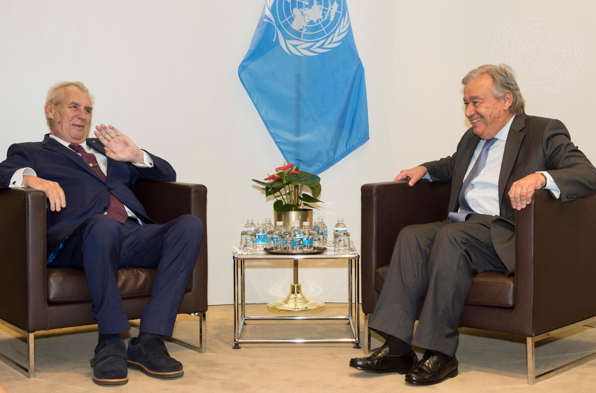 Secretary-General António Guterres (right) meets with with Miloš Zeman, President of the Czech Republic.