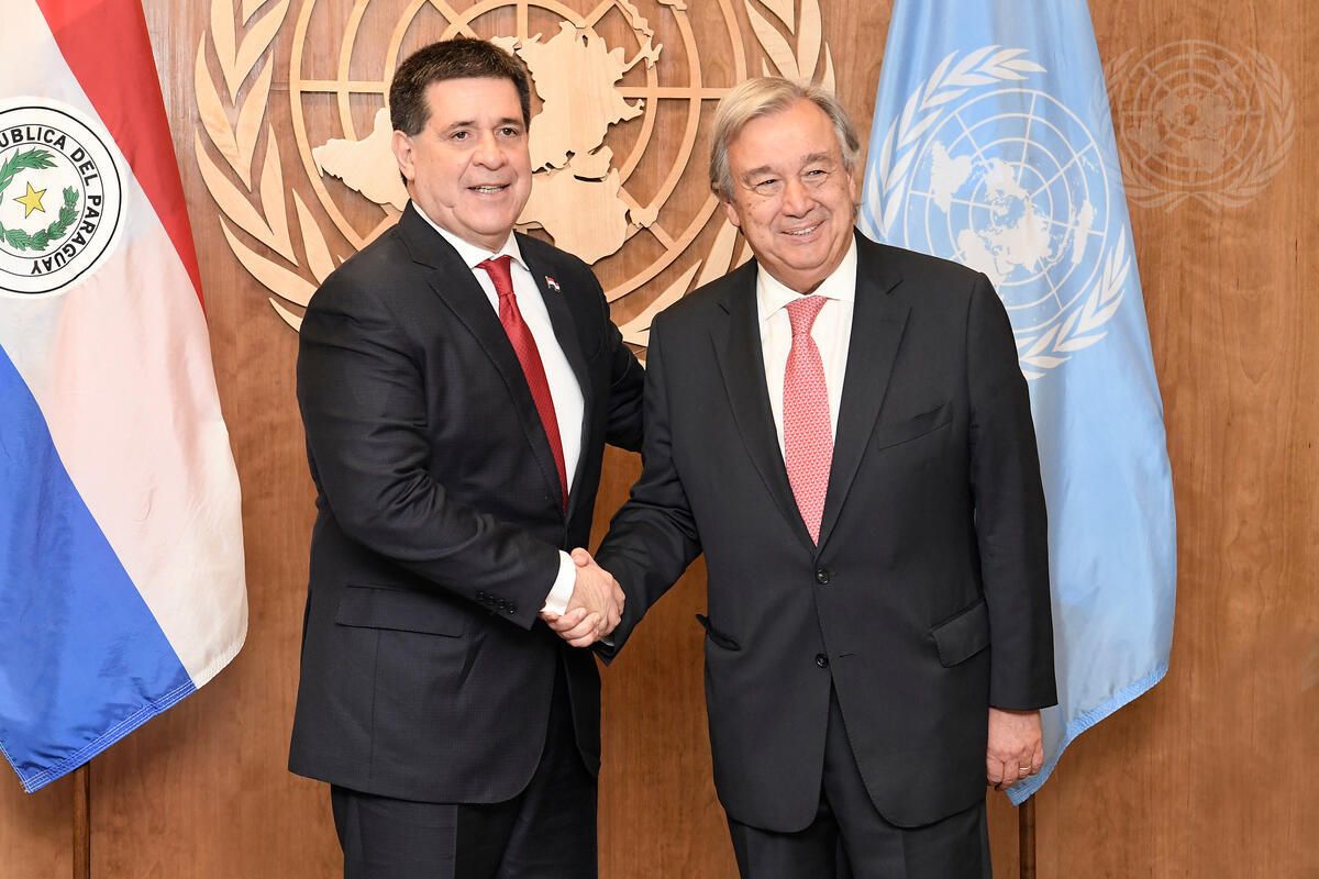 Secretary-General António Guterres (right) meets with Horacio Manuel Cartes Jara, President of the Repulbic of Paraguay.