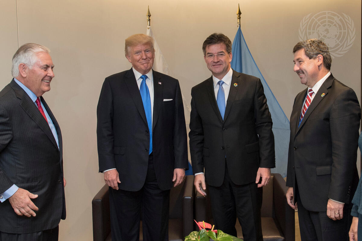 Also present: Rex Tillerson (left), Secretary of State of the United States, and František Ružicka, Chef de Cabinet of the President of the General Assembly.