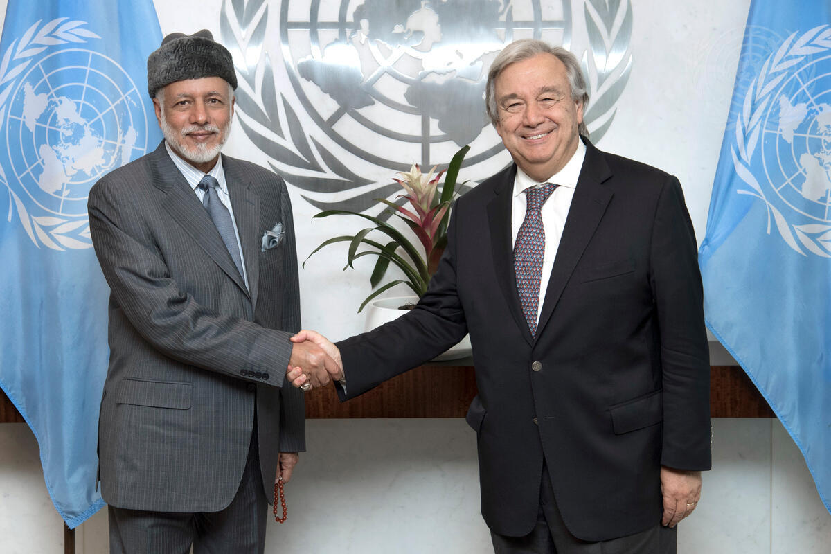 Secretary-General António Guterres (right) meets with Yousuf bin Alawi bin Abdallah, Minister Responsible for Foreign Affairs of the Sultanate of Oman.