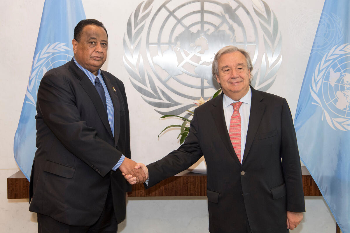 Secretary-General António Guterres (right) meets with Ibrahim Ahmed Abd al-Aziz Ghandour, Minister for Foreign Affairs of the Republic of Sudan.