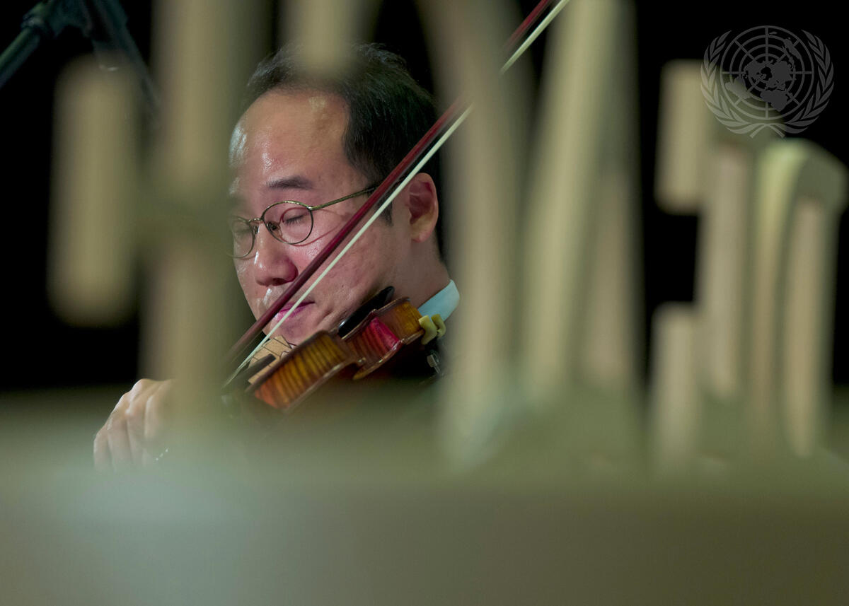Hyung Joon Won, violinist from the Republic of Korea, performs at the fifth edition of the Geneva Peace Talks, under the theme “Building Bridges,” held in observance of the International Day of Peace (21 September).