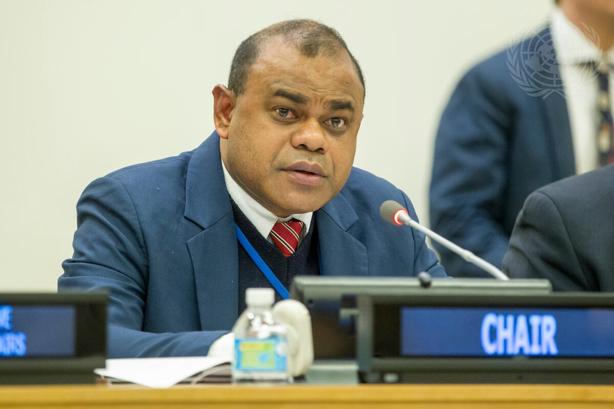 Odo Tevi, Permanent Representative of the Republic of Vanuatu to the UN, and Chair of the UN Disarmament Commission, chairs the opening meeting of the 2016 substantive session of the Commission, taking place in New York on 4-22 April.